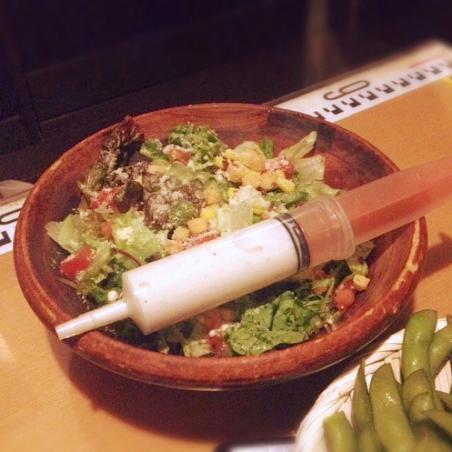 注射器でドレッシングをかける